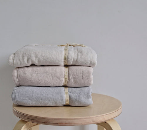 Draps et serviettes de bain en gaze / éponge coton OEKO-TEX