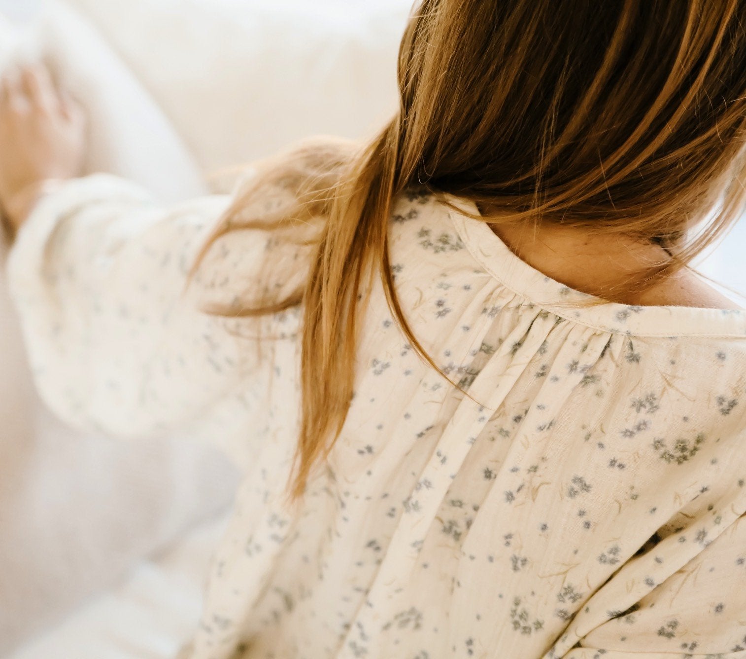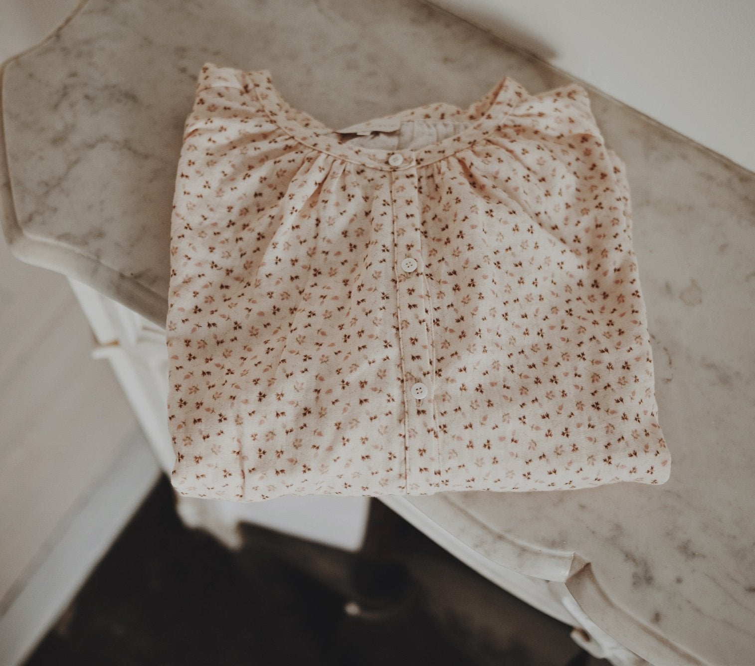 - Boutons en nacre sur toute la longueur pour un décolleté sur mesure.