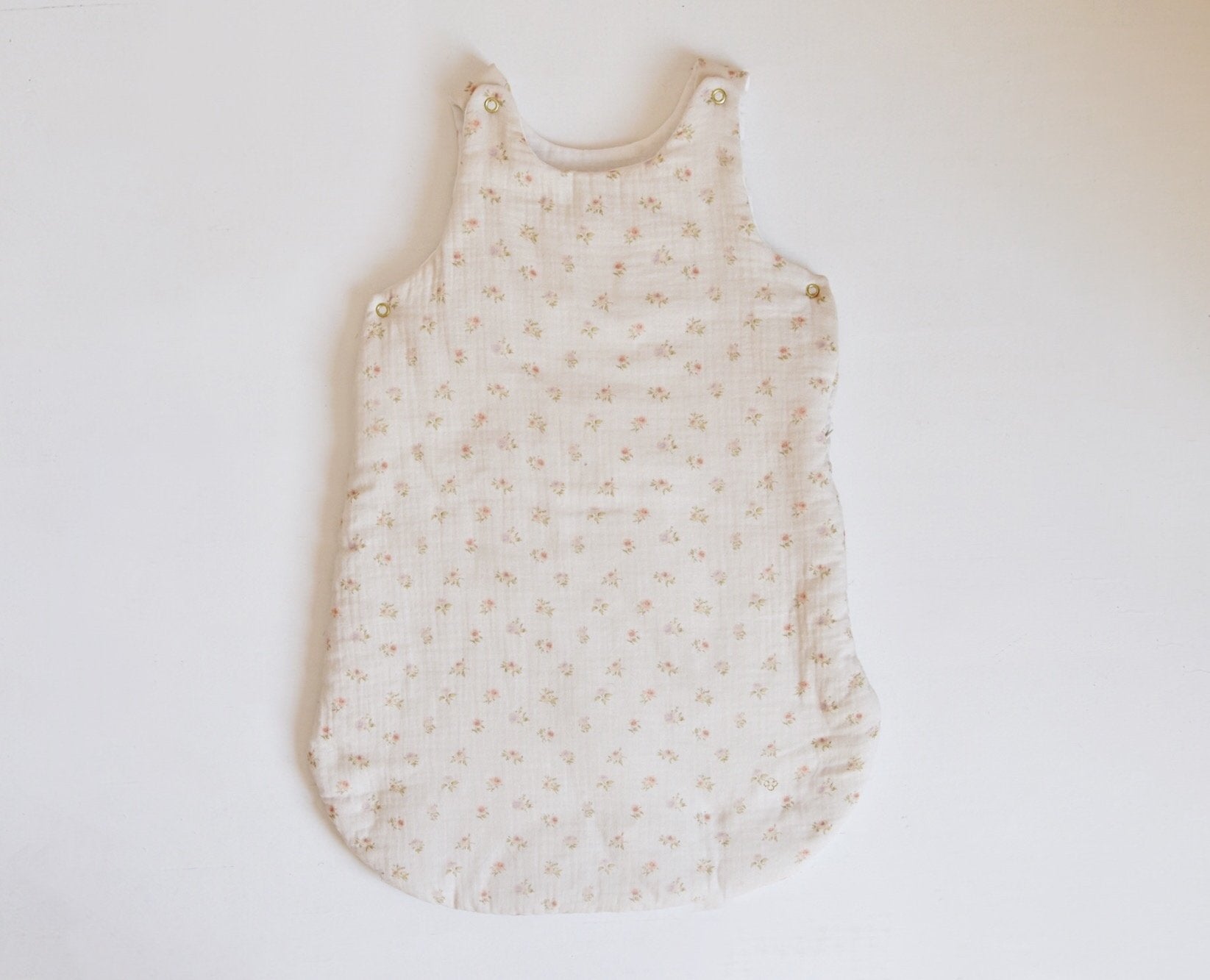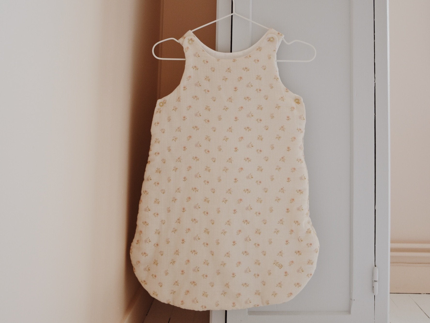 - Gigoteuse ouatinée en gaze de coton biologique certifié GOTS intérieur et extérieur.