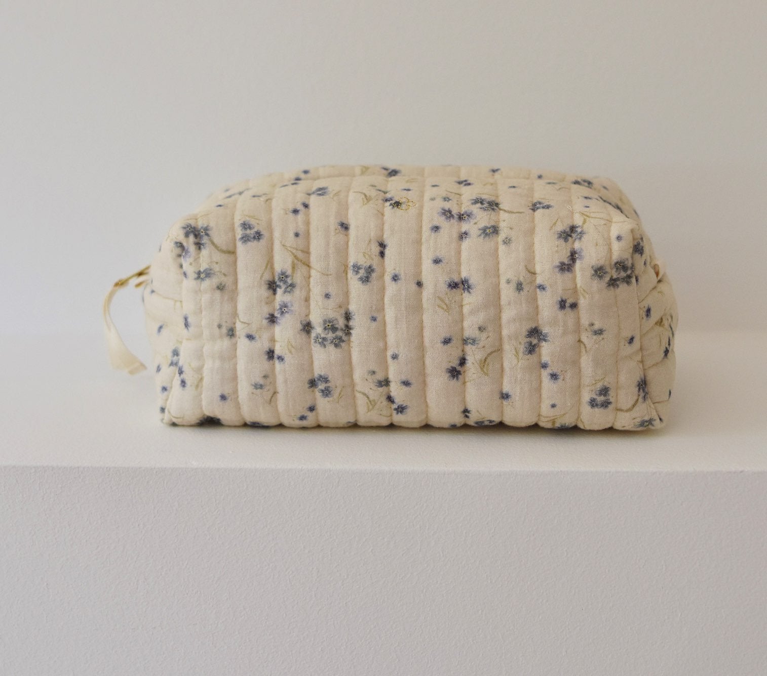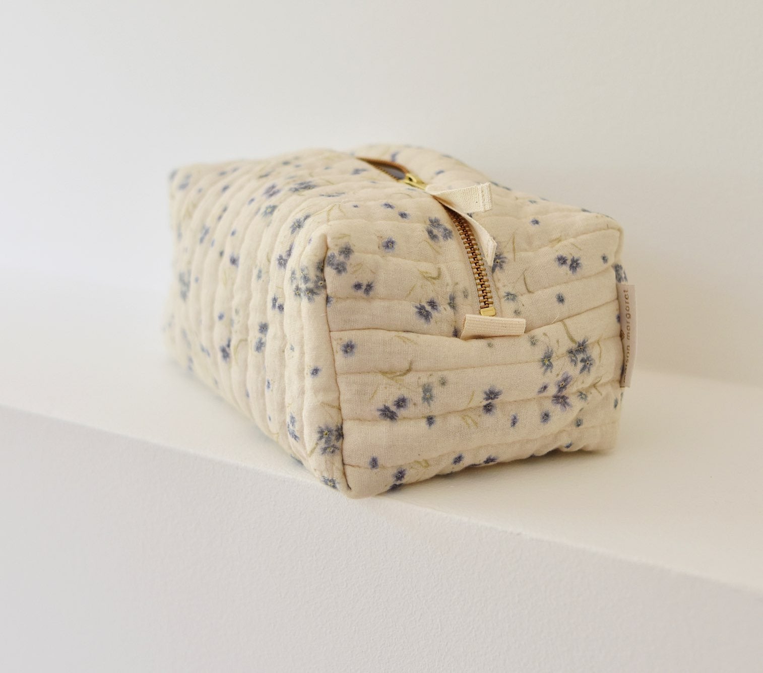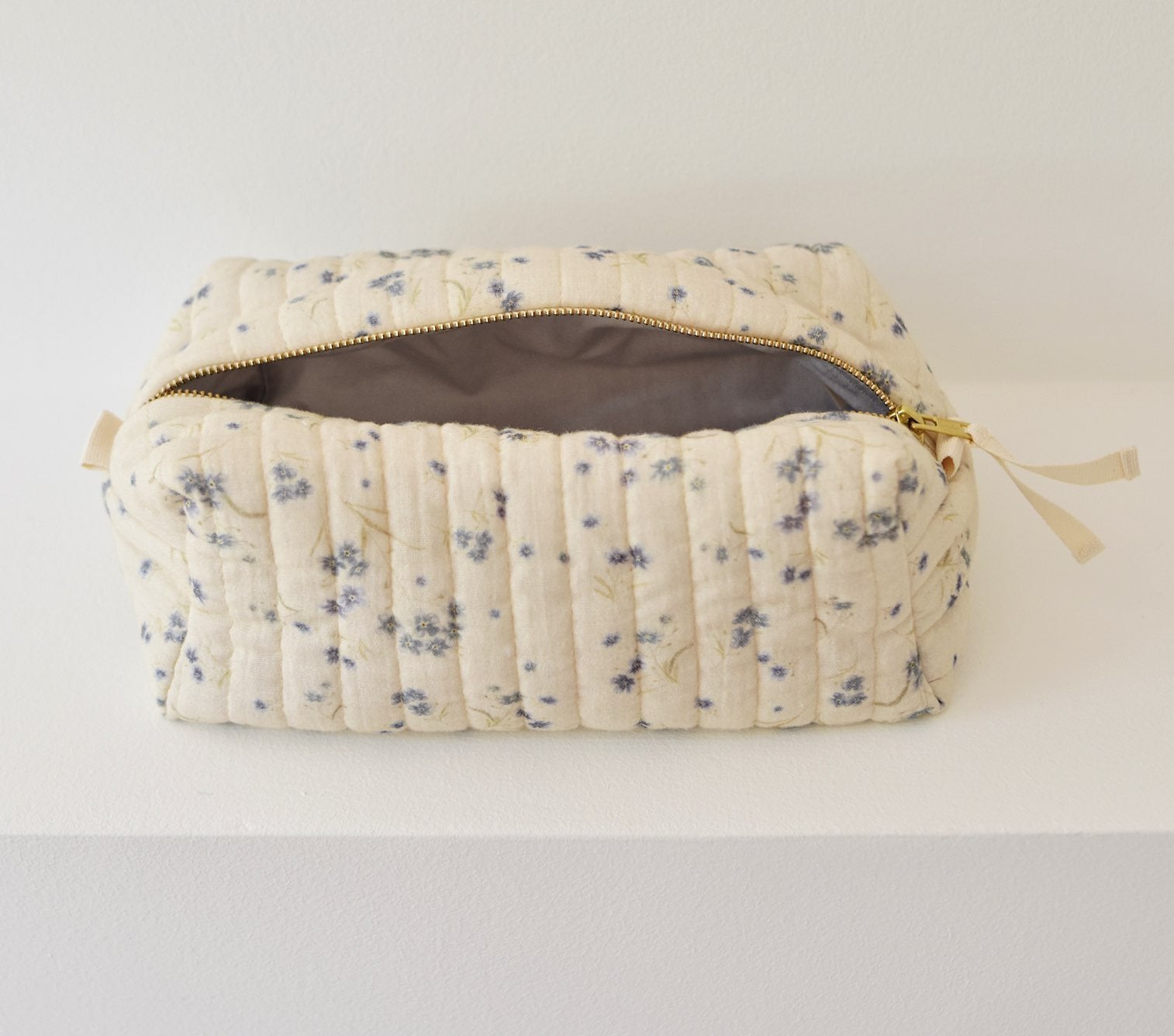 La trousse à maquillage matelassée version grand format en gaze de coton biologique GOTS imprimée à glisser de toute urgence dans votre sac à main ! Et toujours, l’amour du détail avec nos finitions raffinées…