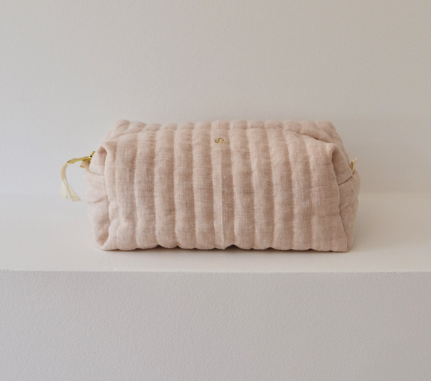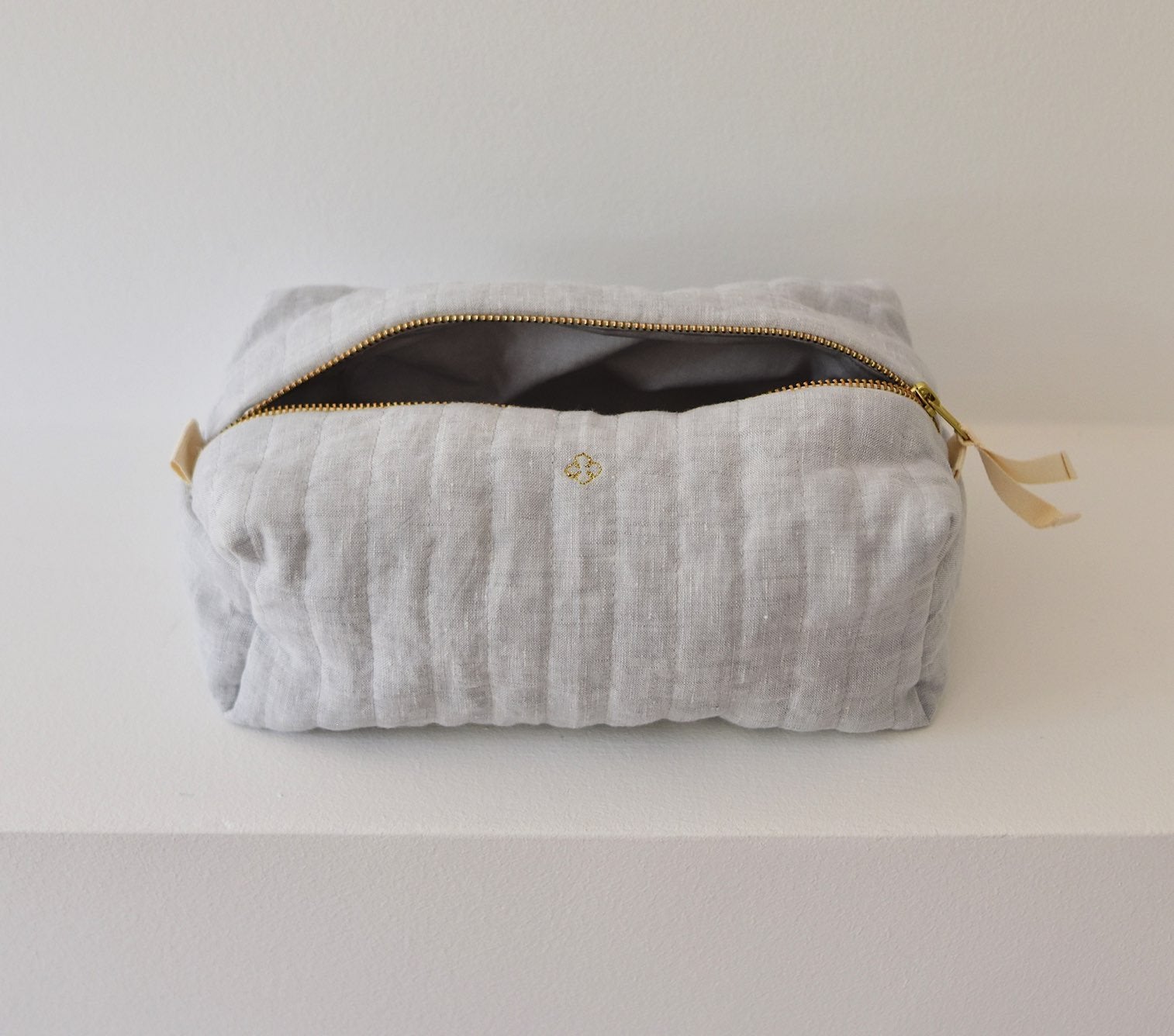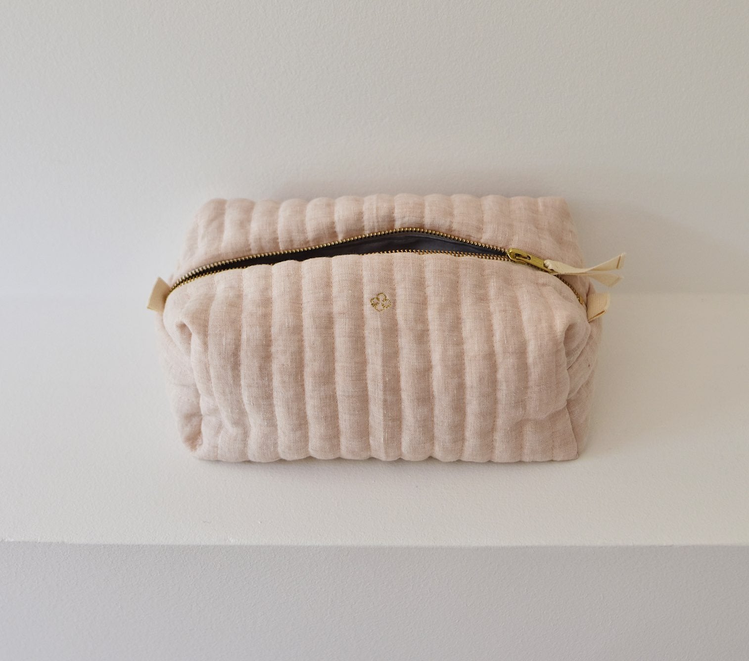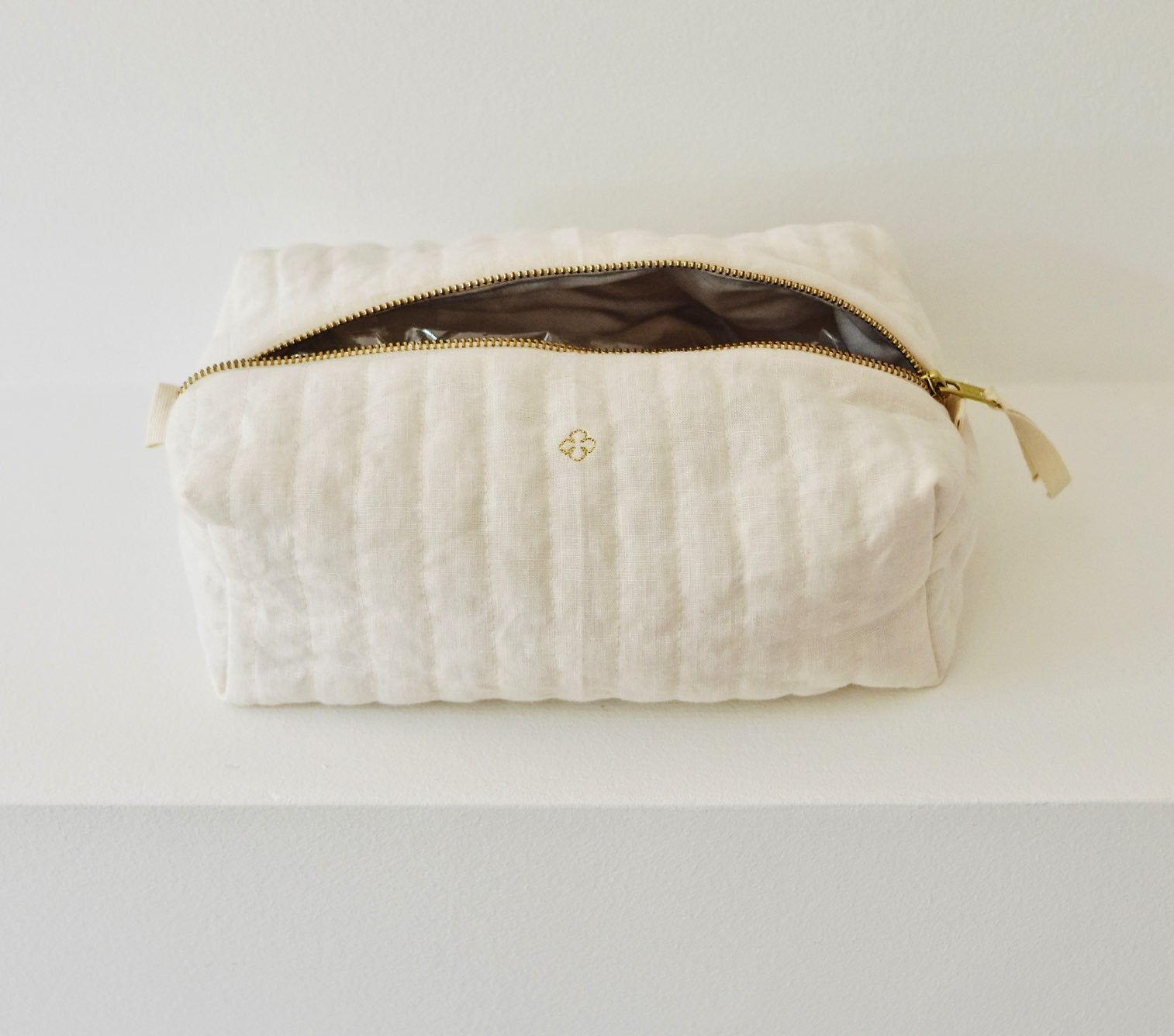 La trousse à maquillage matelassée version grand format en lin lavé à glisser de toute urgence dans votre sac à main ! Et toujours, l’amour du détail avec nos finitions raffinées…