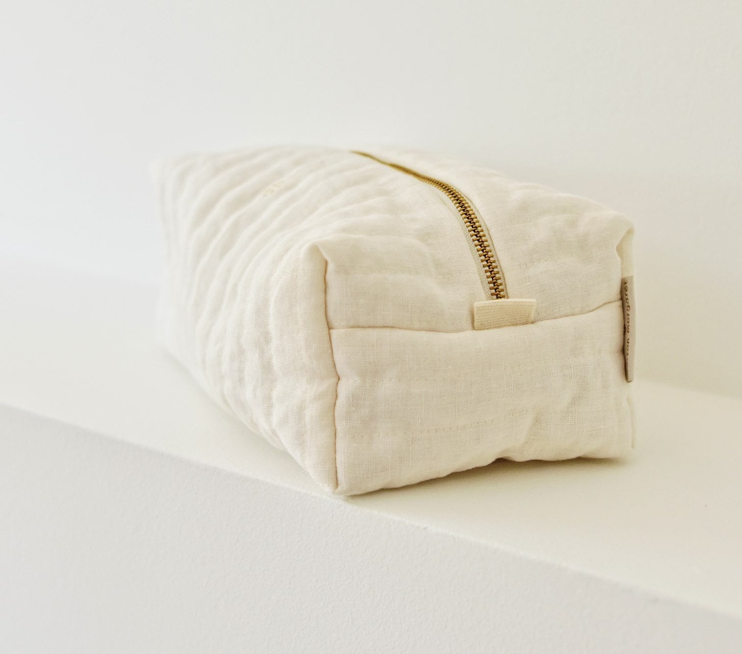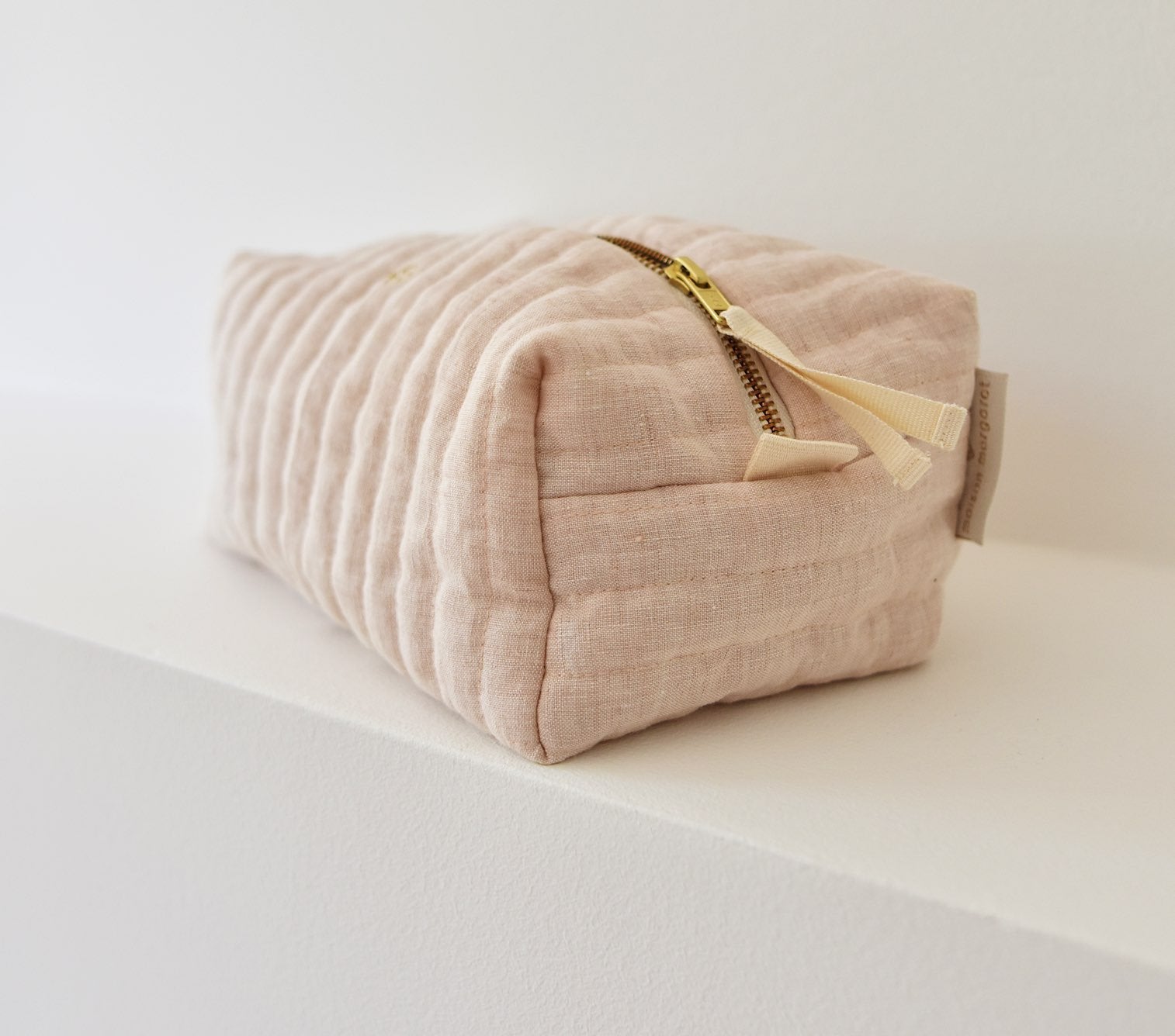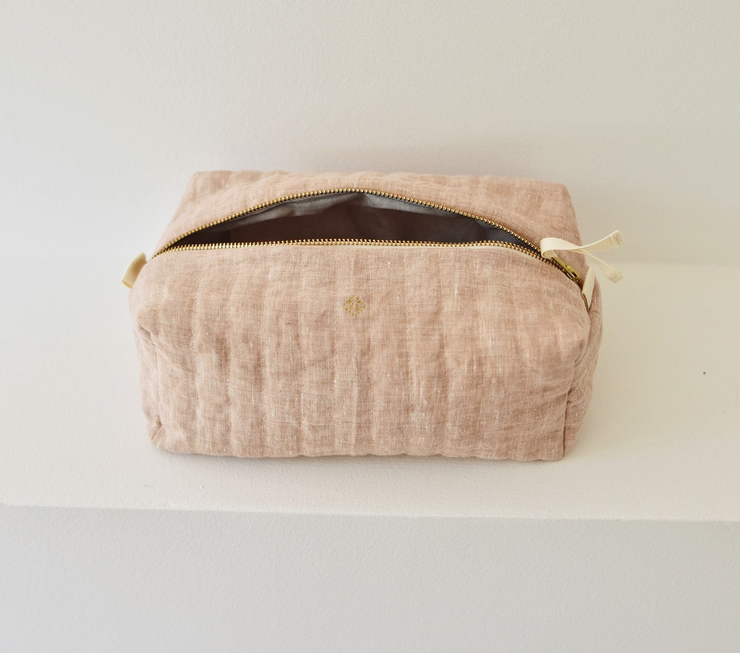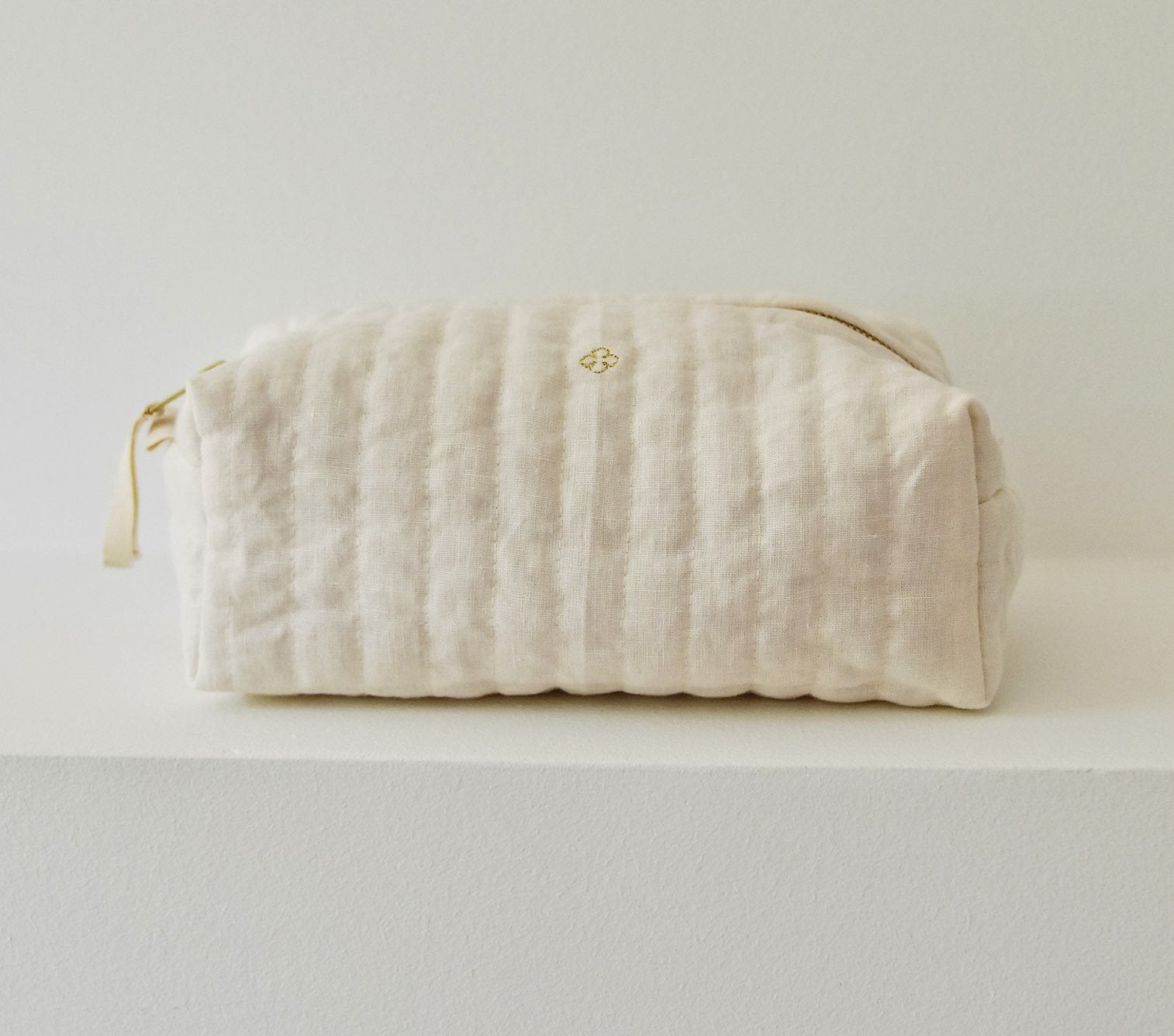 La trousse à maquillage matelassée version grand format en lin lavé à glisser de toute urgence dans votre sac à main ! Et toujours, l’amour du détail avec nos finitions raffinées…