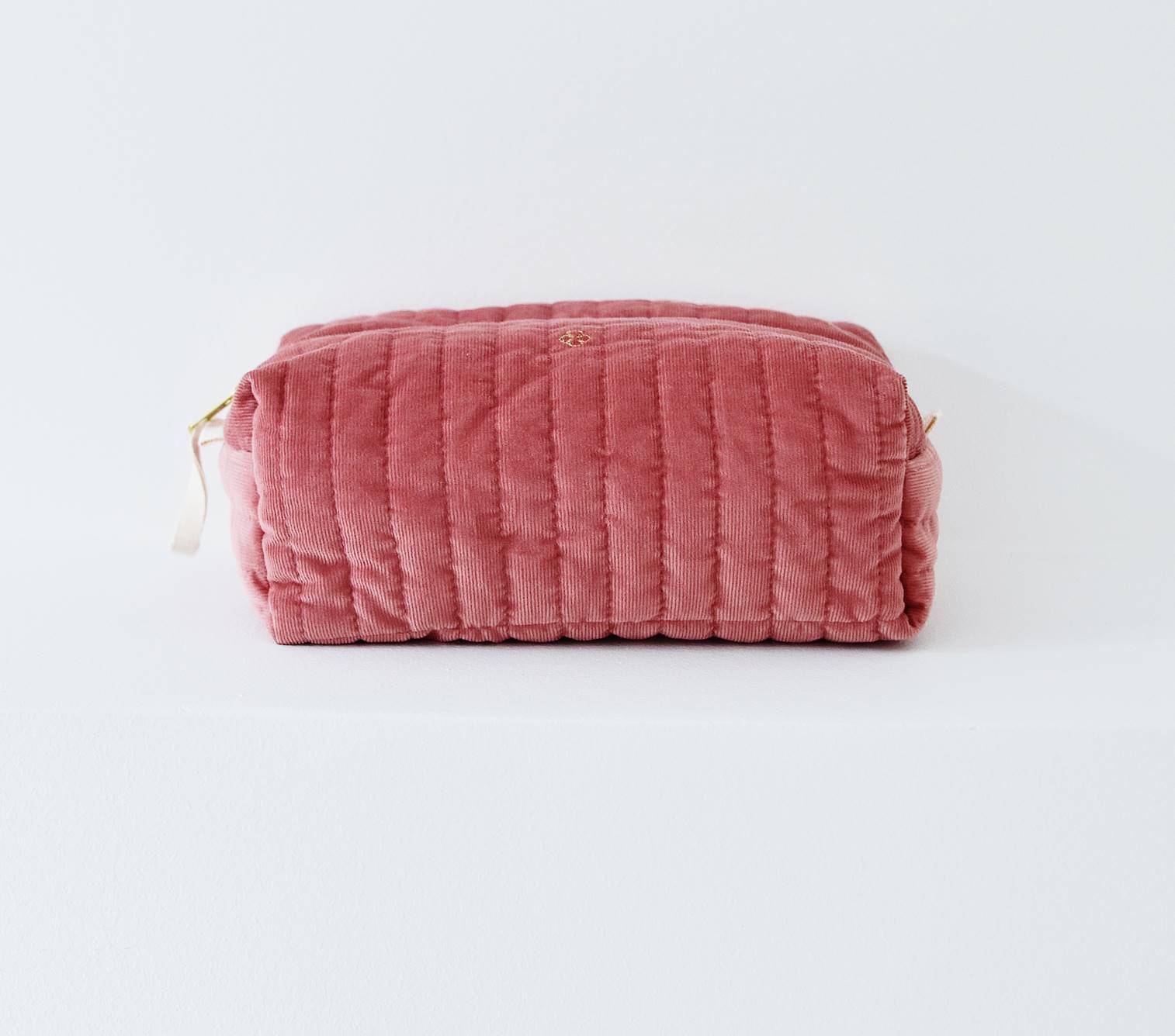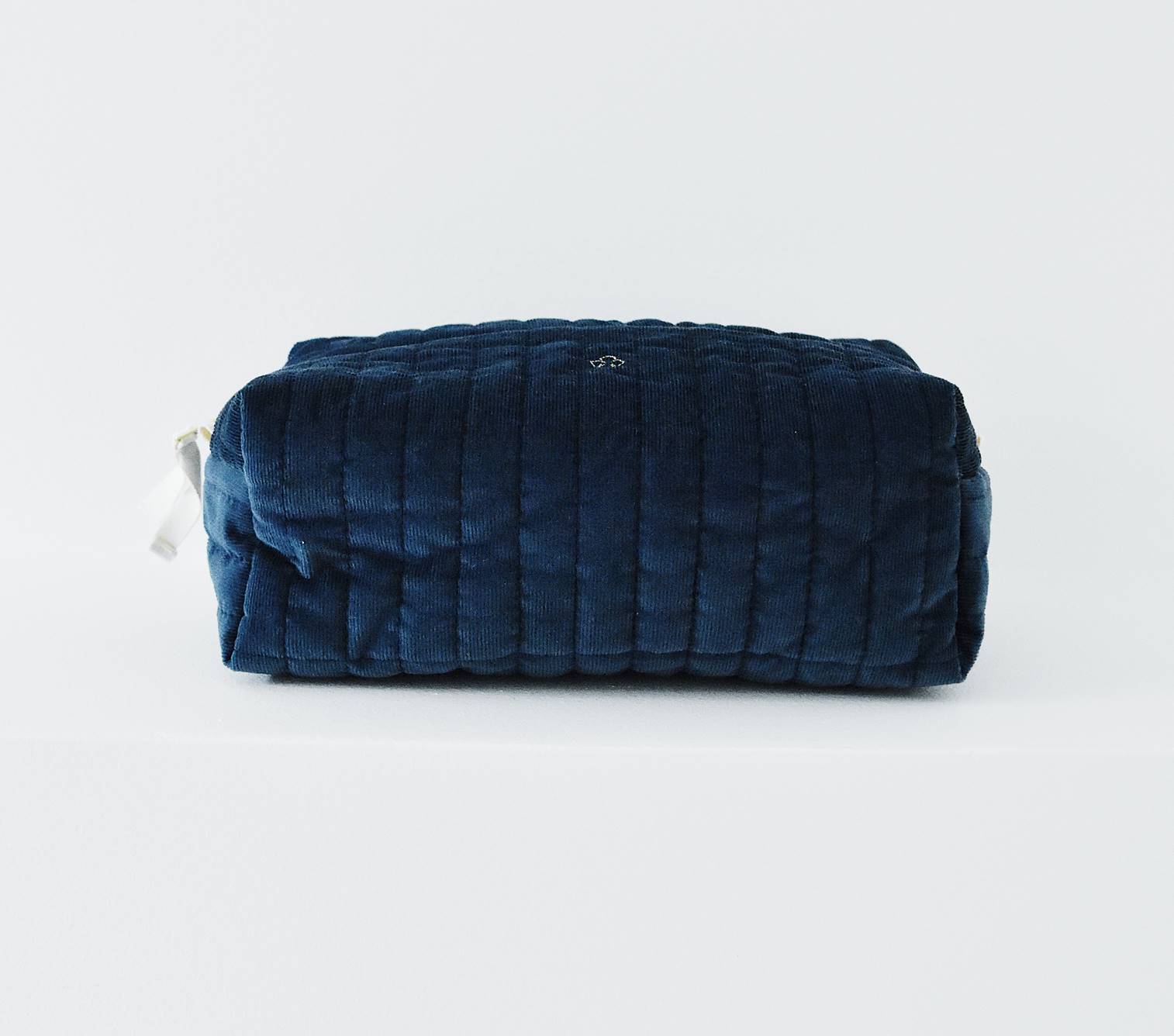 La trousse à maquillage matelassée version grand format en velours de coton milleraies à glisser de toute urgence dans votre sac à main ! Et toujours, l’amour du détail avec nos finitions raffinées…