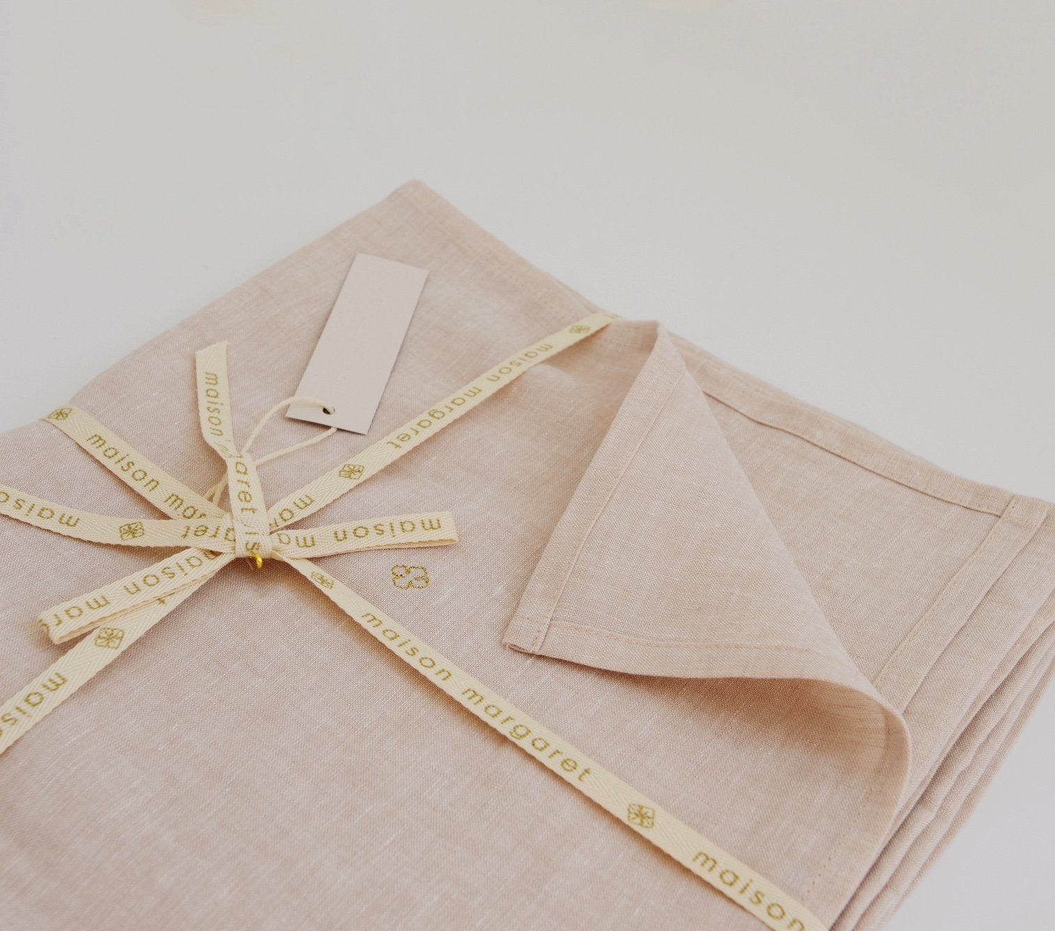 L’élégance du lin lavé et une touche de poésie sur votre table grâce aux couleurs poudrées exclusives Maison Margaret. Ou l’art de recevoir selon Maison Margaret !