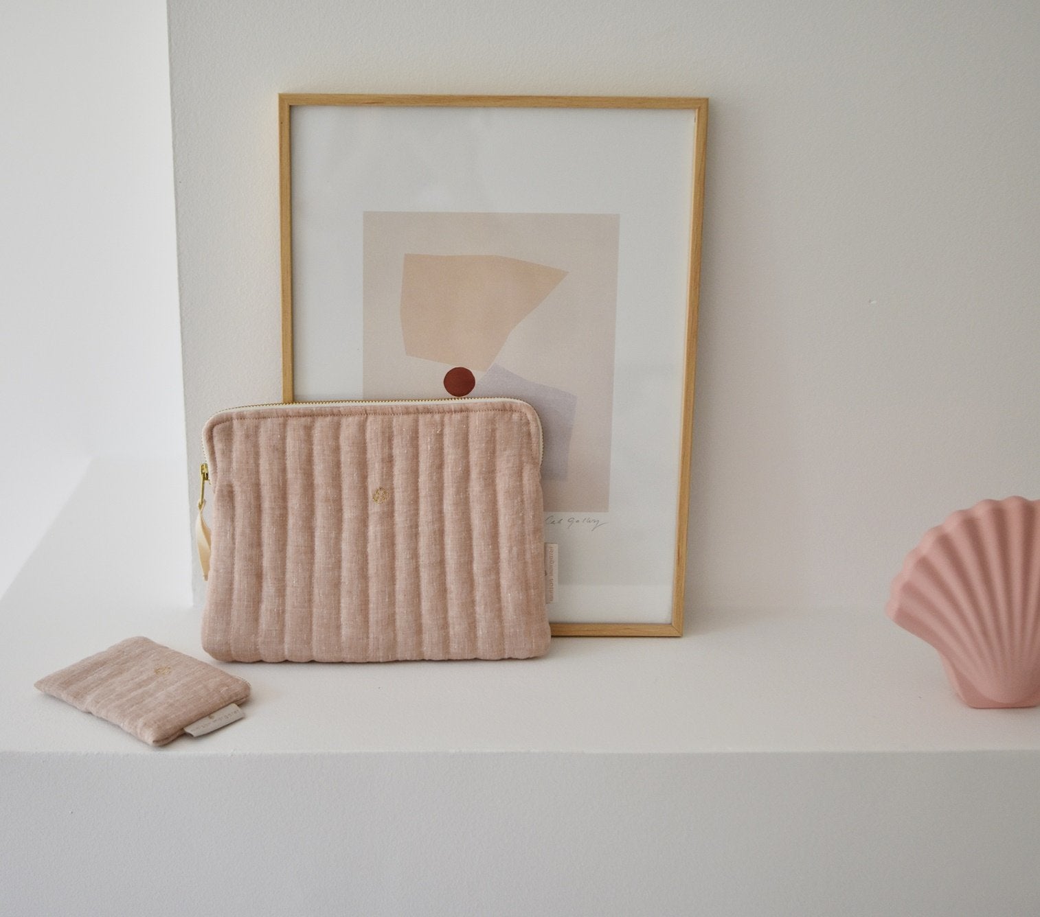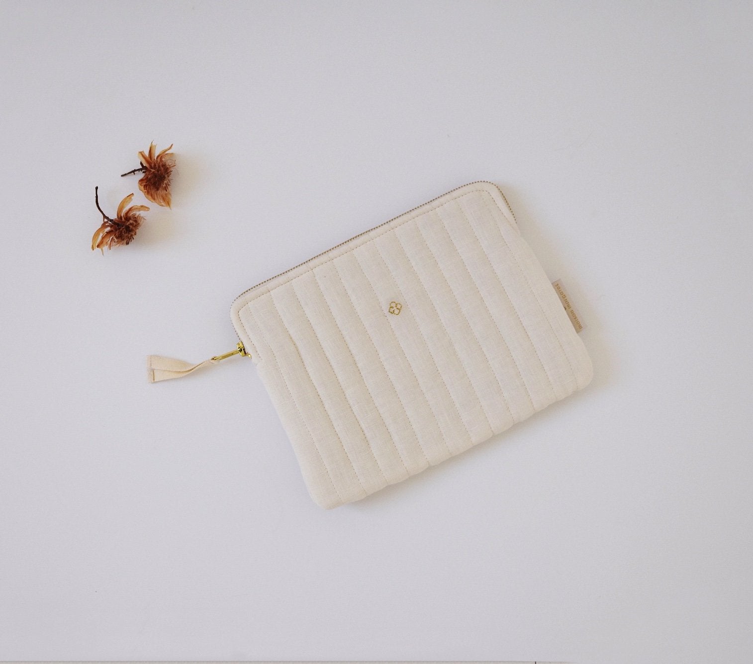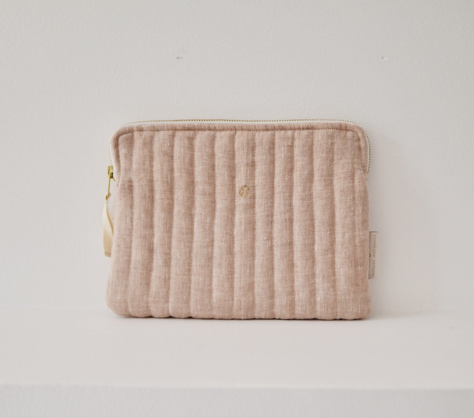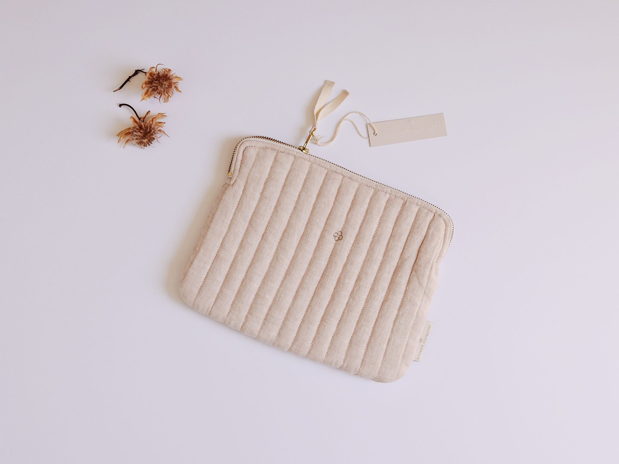 Pochette matelassée en lin lavé pour protéger votre tablette avec élégance. Et toujours, l’amour du détail avec nos finitions raffinées…