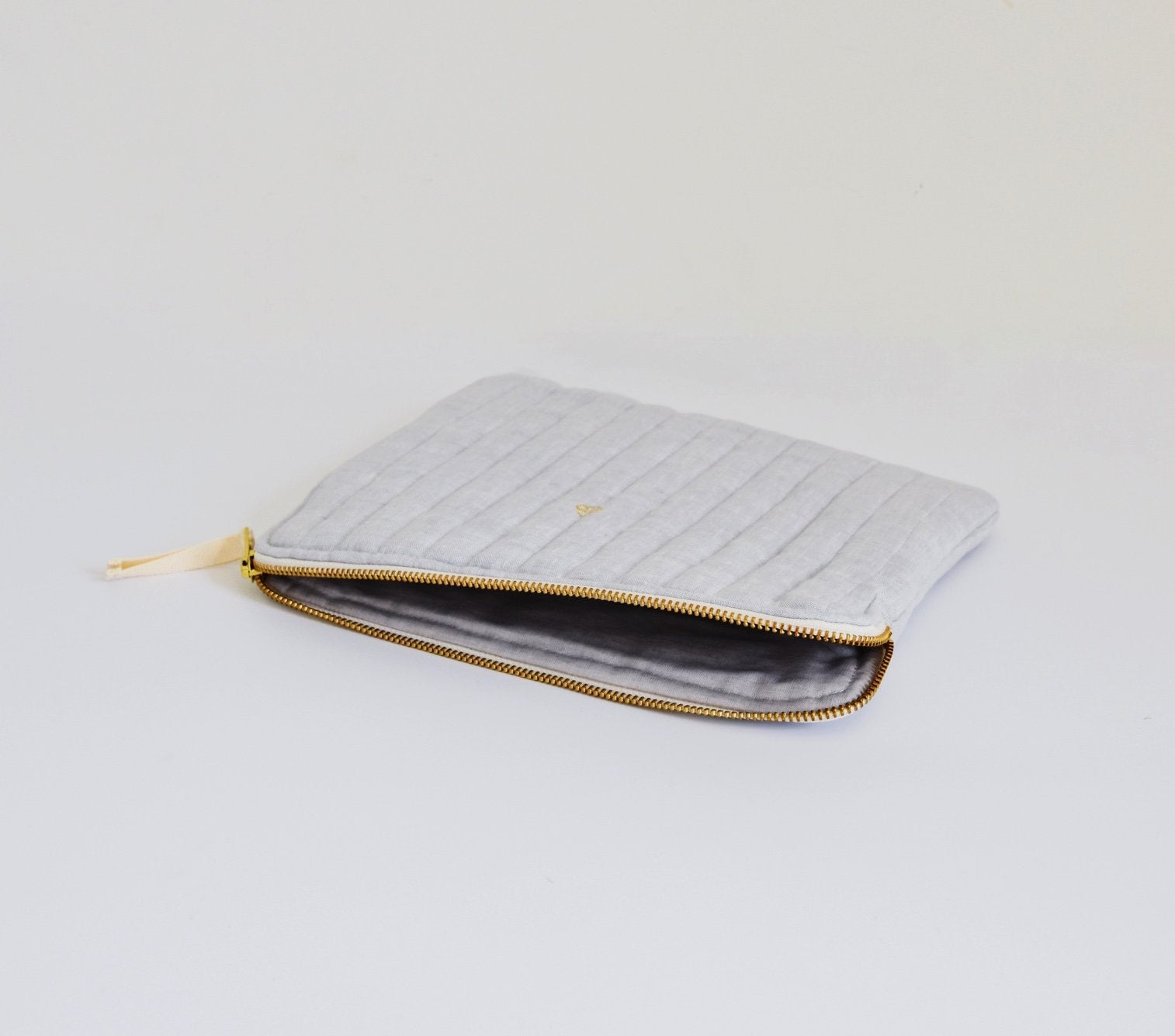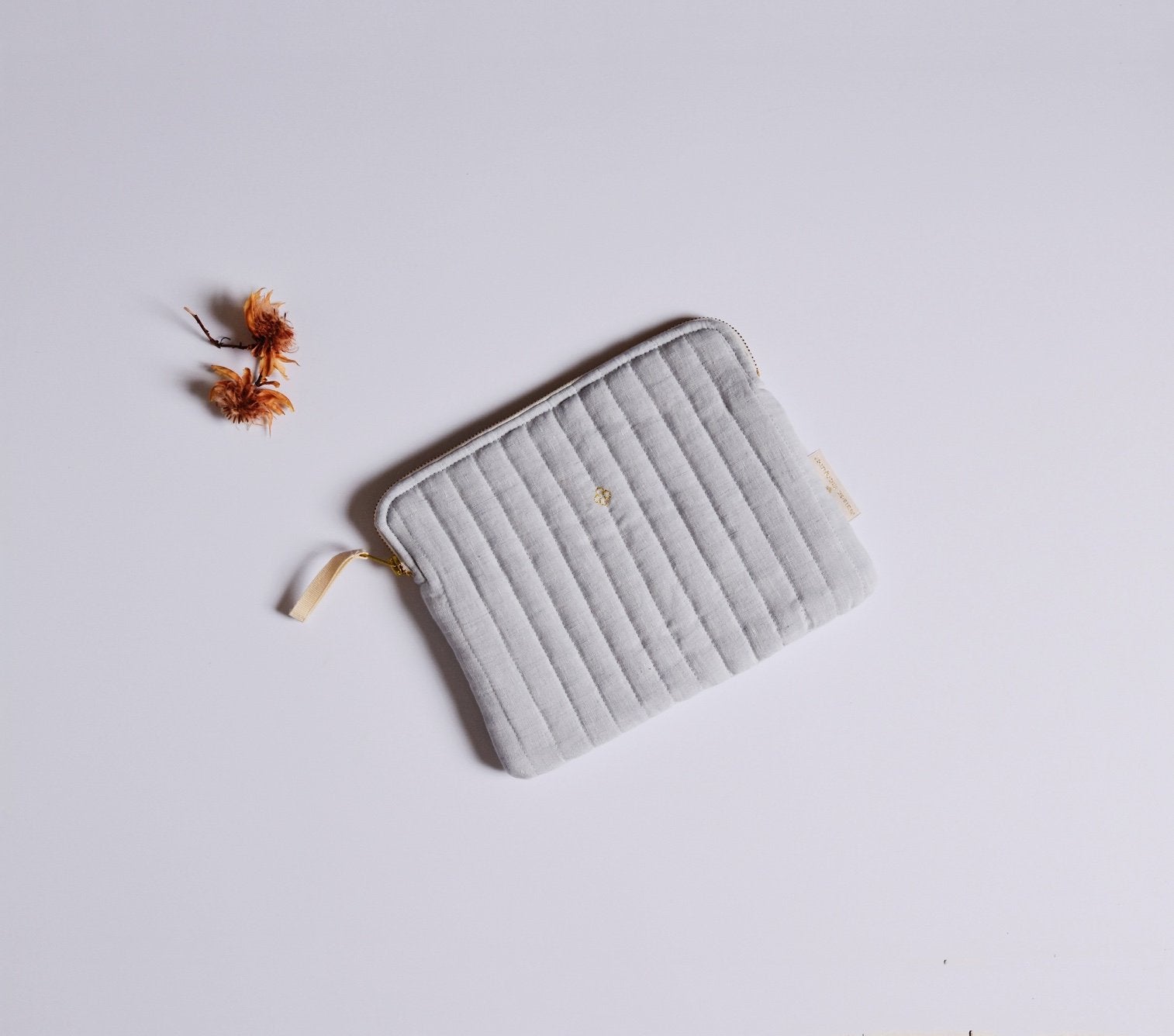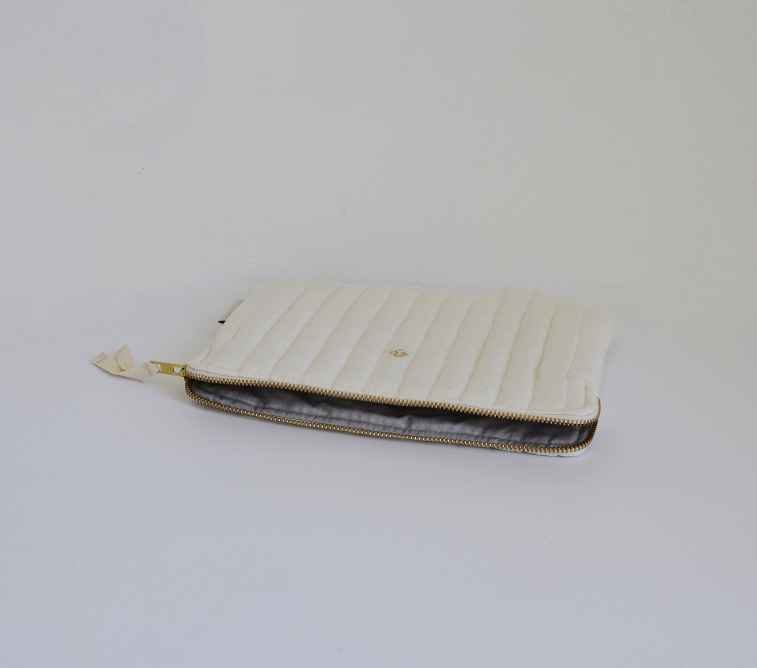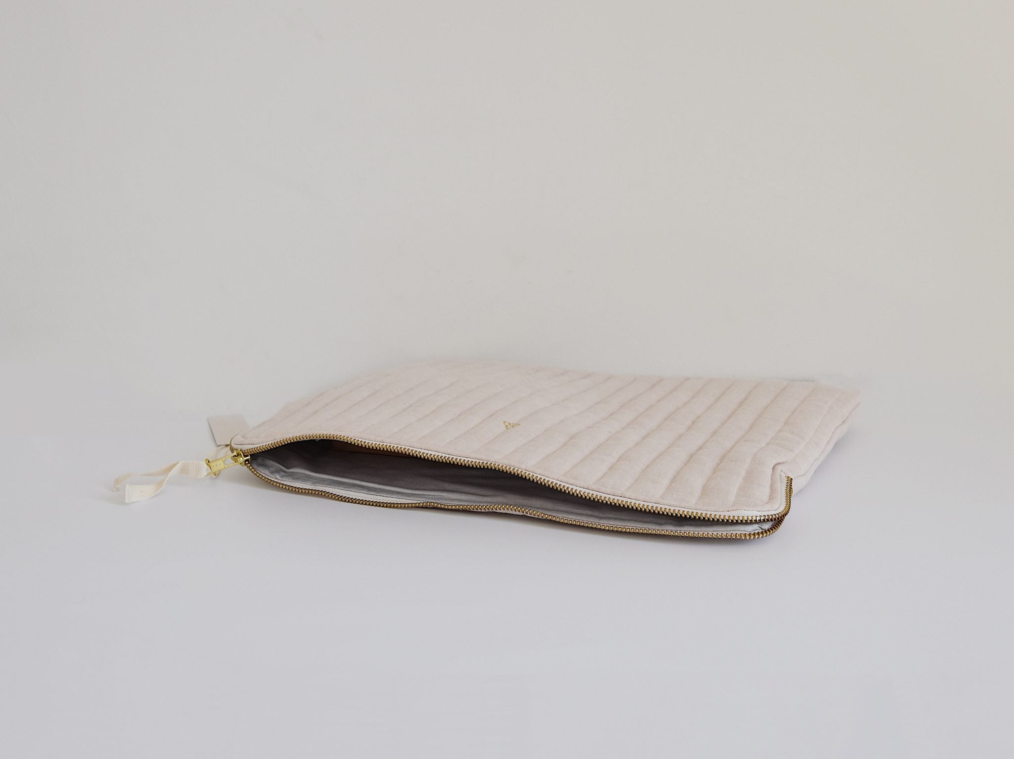 Pochette matelassée en lin lavé pour protéger votre tablette avec élégance. Et toujours, l’amour du détail avec nos finitions raffinées…