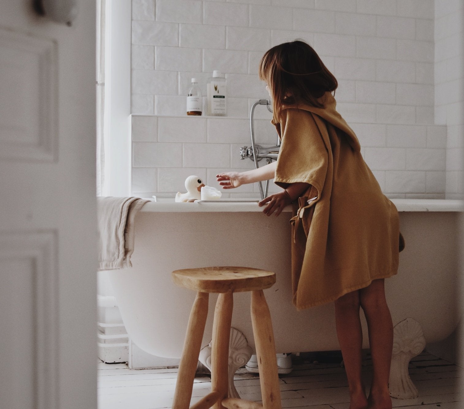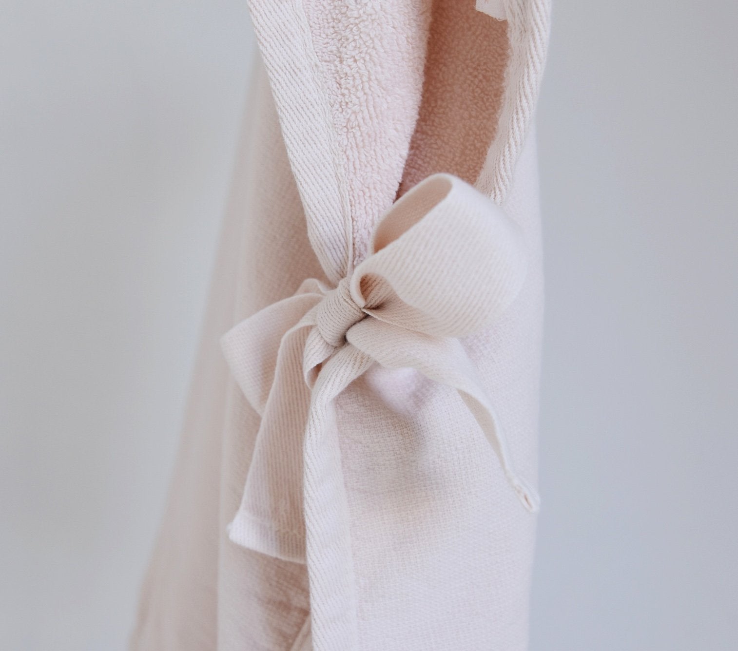 Découvrez notre gamme pour le bain en gaze et éponge de coton certifié OEKO-TEX. Un tissu singulier, très doux, léger et super absorbant !
