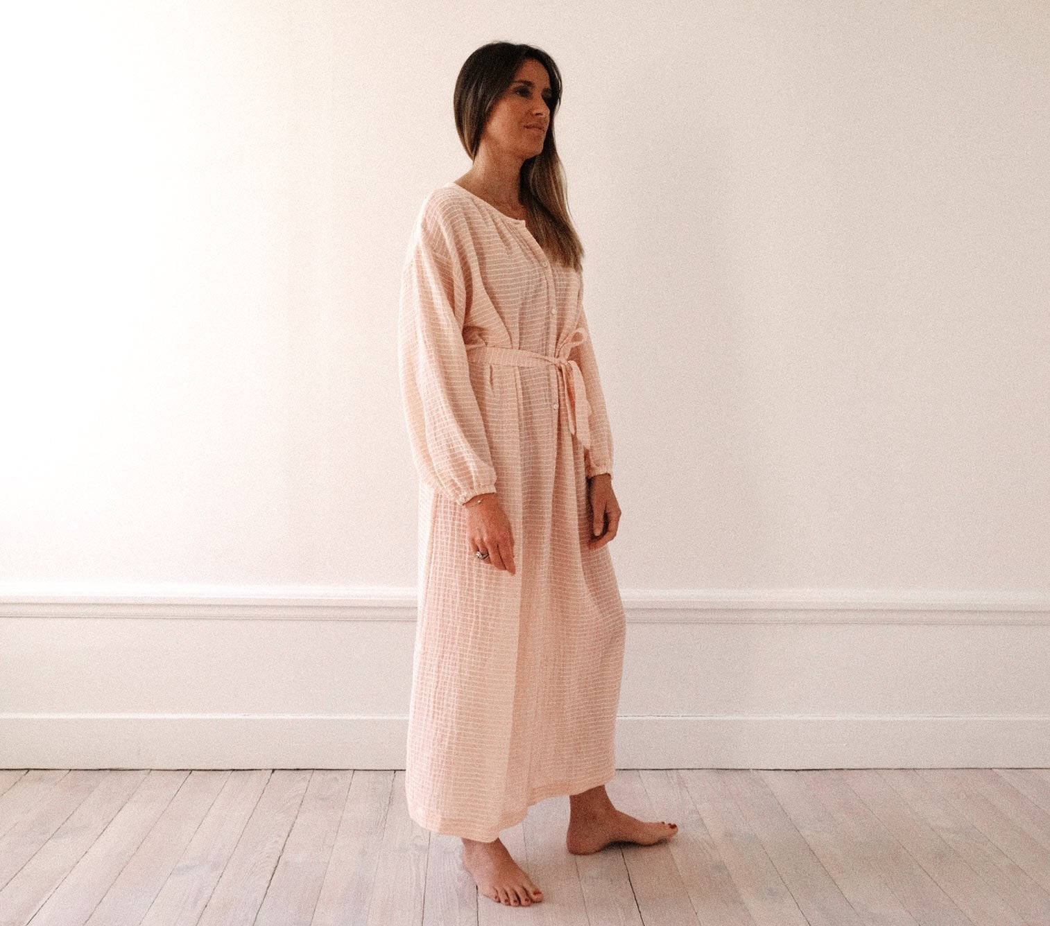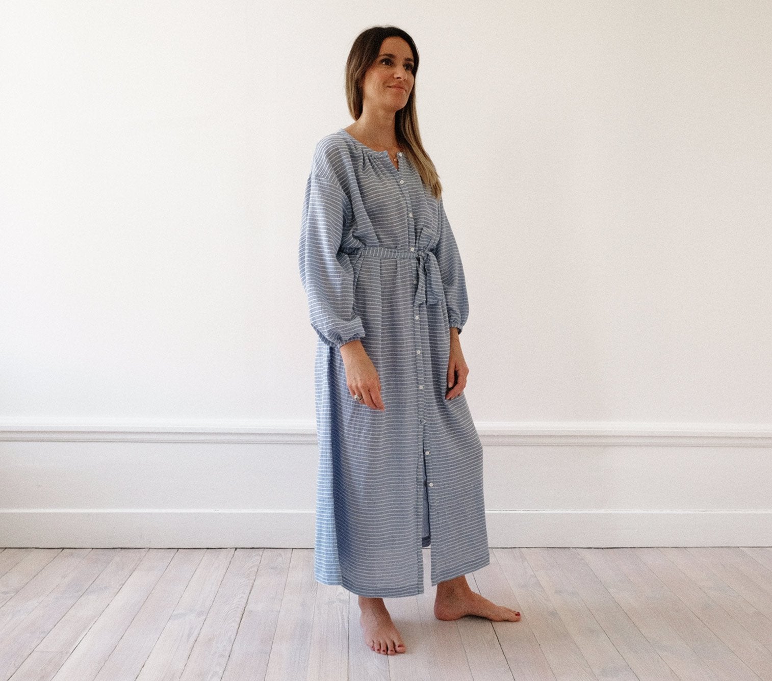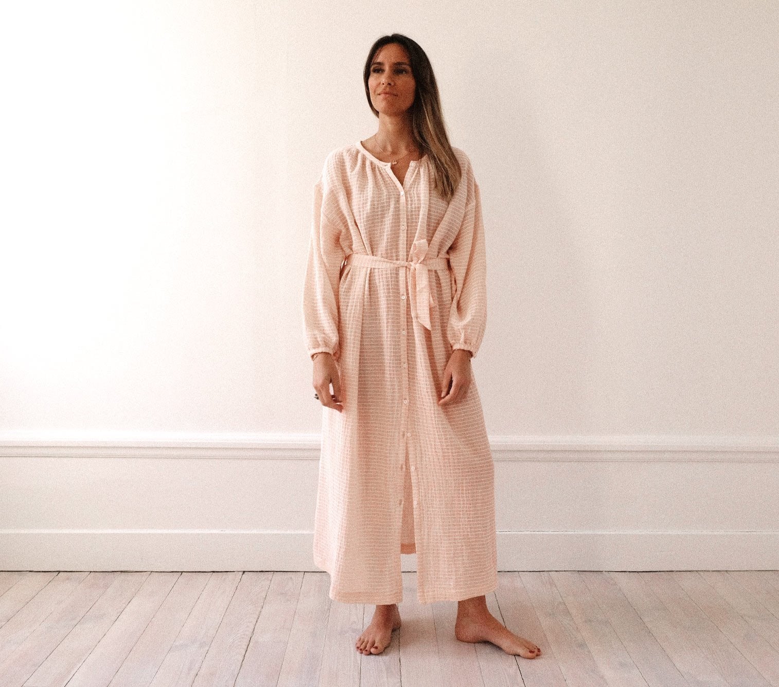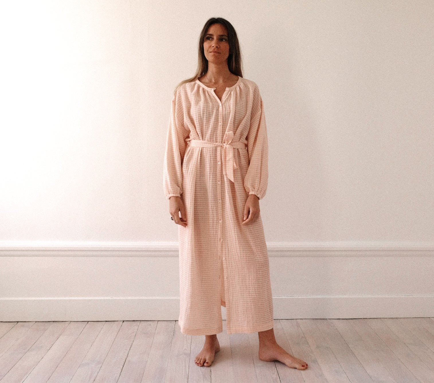 Une robe longue à porter dedans ou dehors, ceinturée ou non !