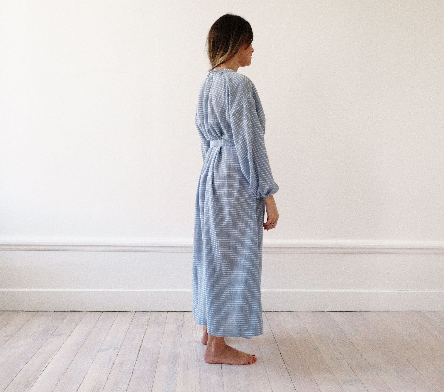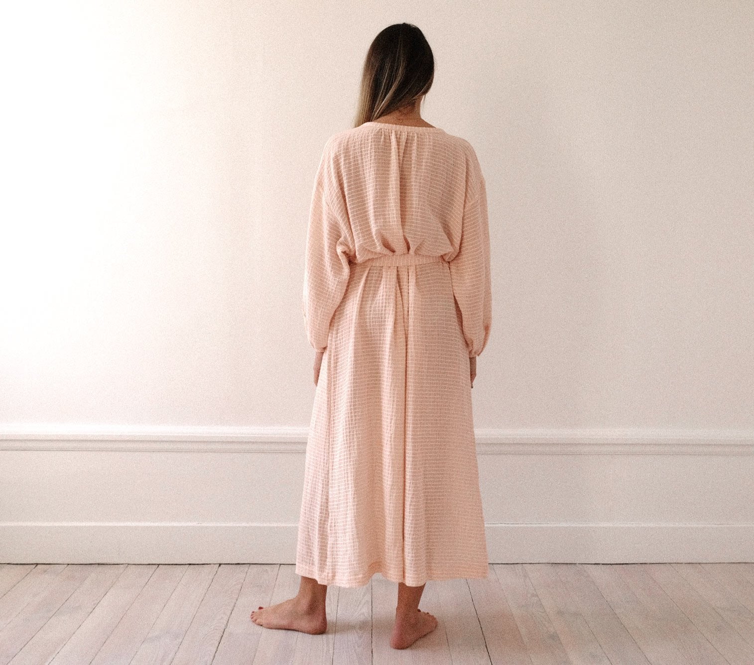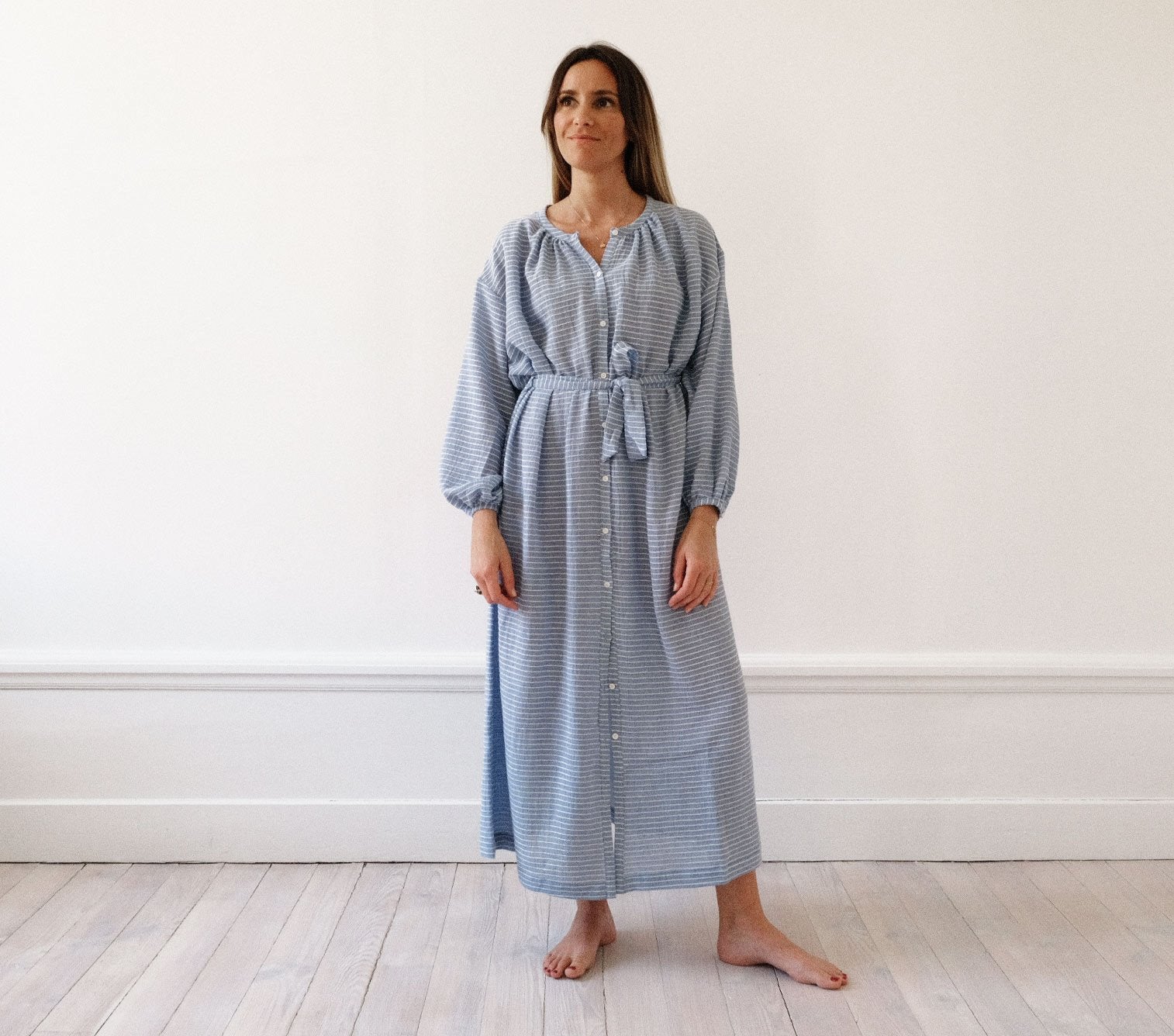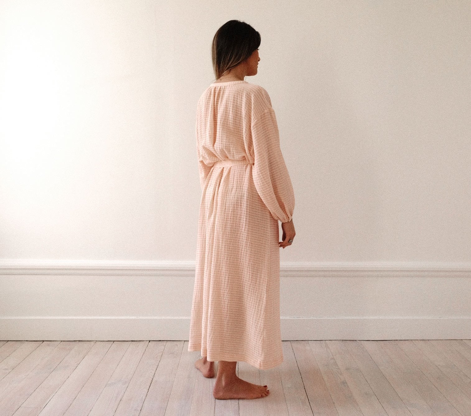 Une robe longue à porter dedans ou dehors, ceinturée ou non !