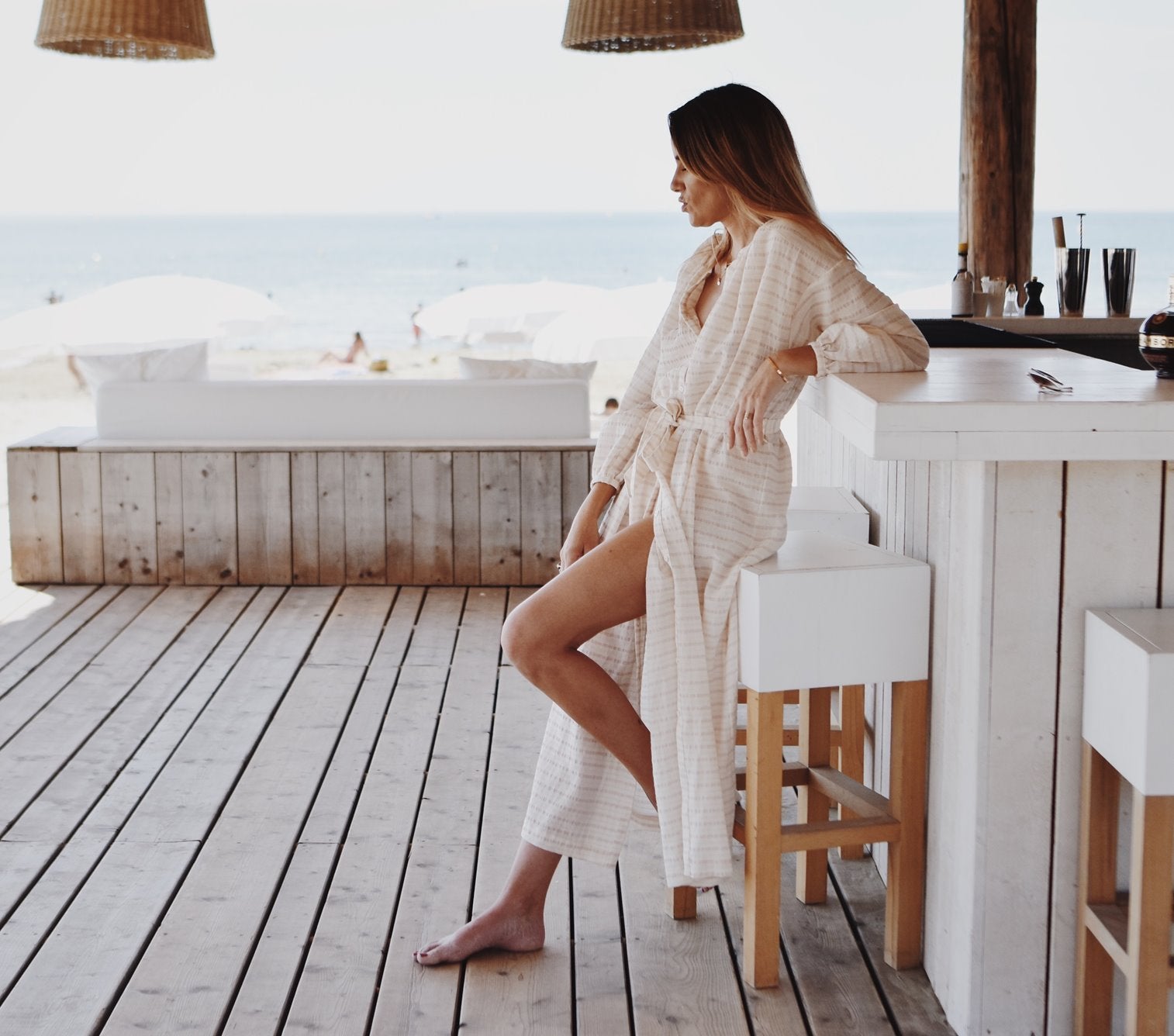 - Astuce look : à la sortie du lit, l'été avec une paire de spartiates ou entièrement ouverte sur un maillot de bain à la plage cet été !