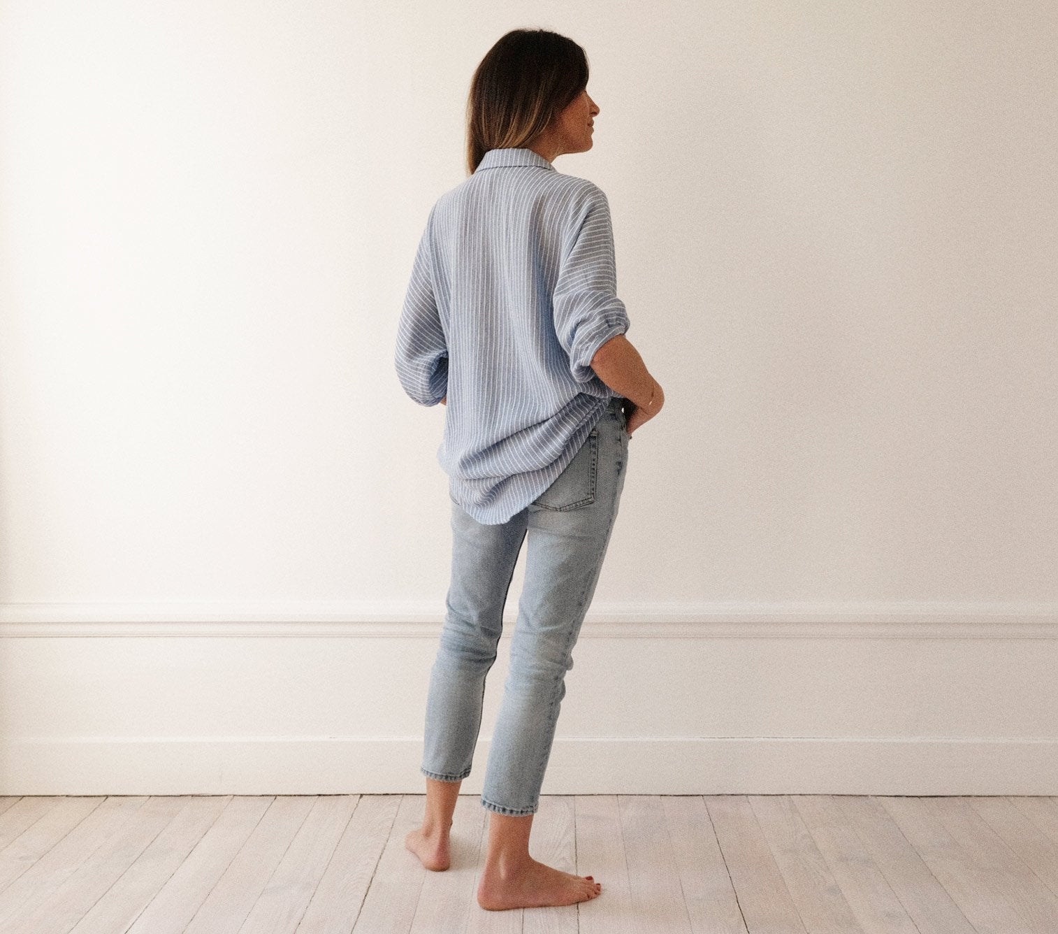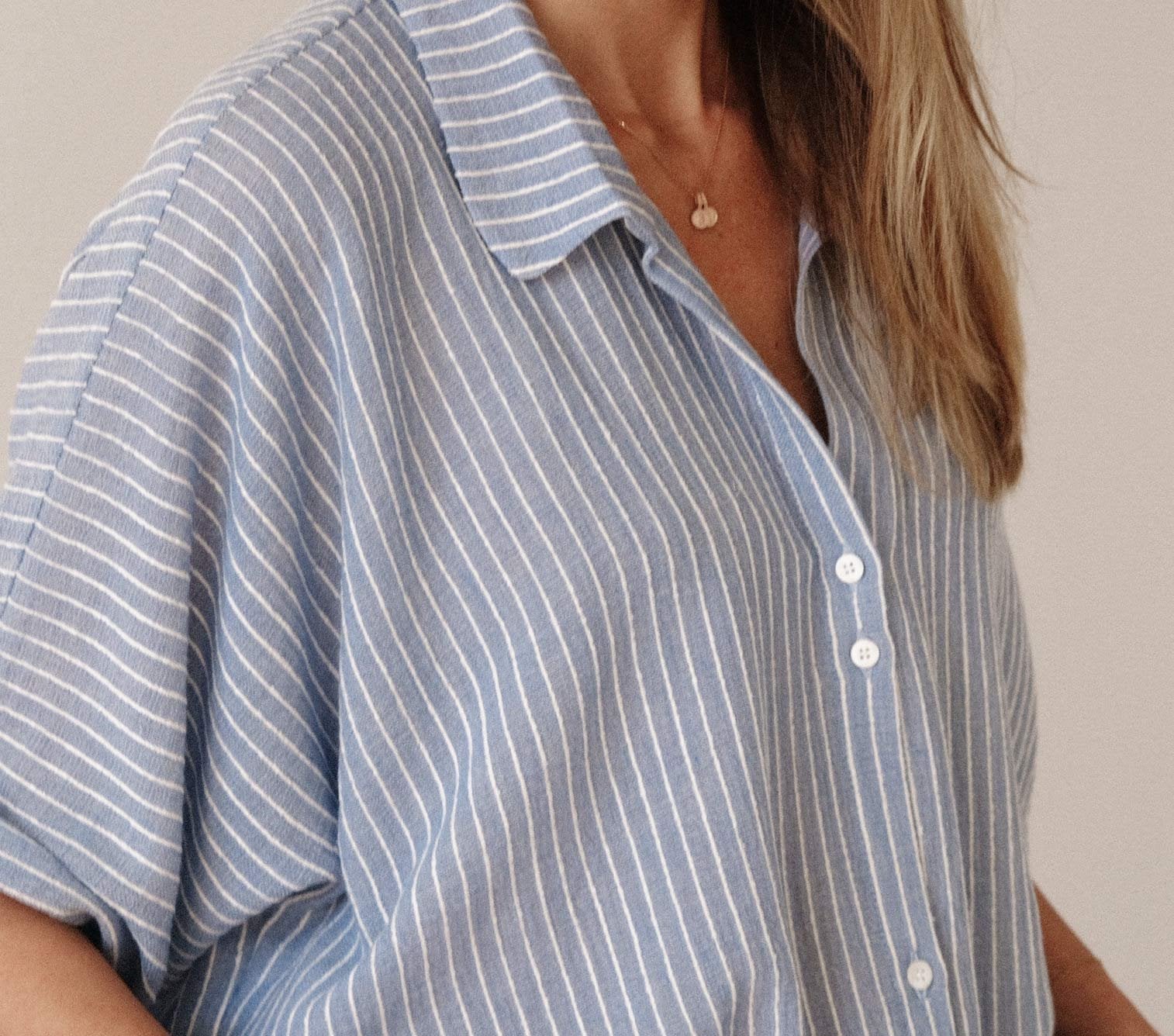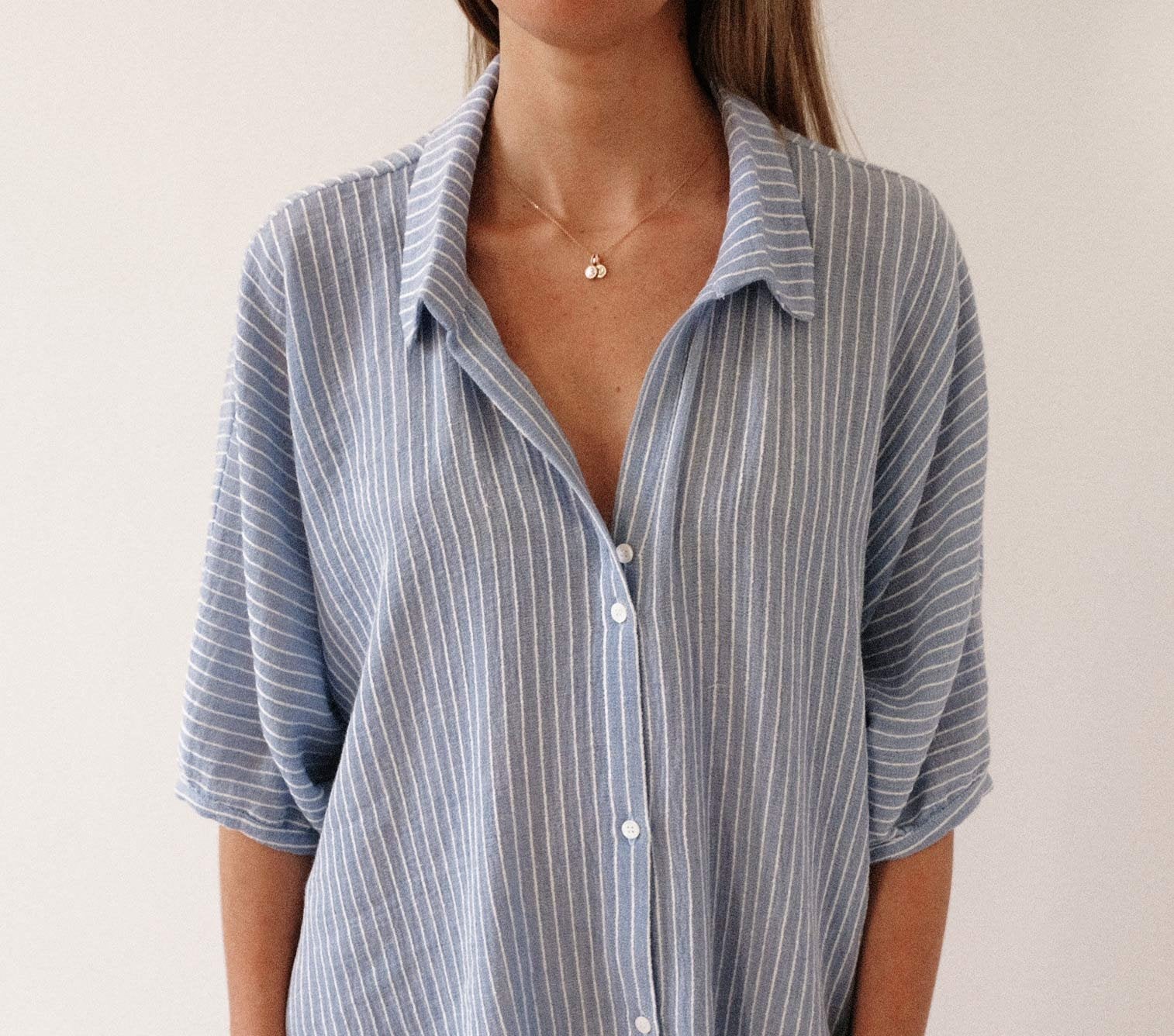 - Astuce : pour un look “ville”, rentrez votre chemise Andrea dans un pantalon / un jeans avec un blazer ou un gilet en maille. A porter également en robe de plage ouverte sur votre maillot de bain, en robe d’été avec une paire de spartiates ou avec un short en jeans ou en lin, en rentrant le devant de la chemise.