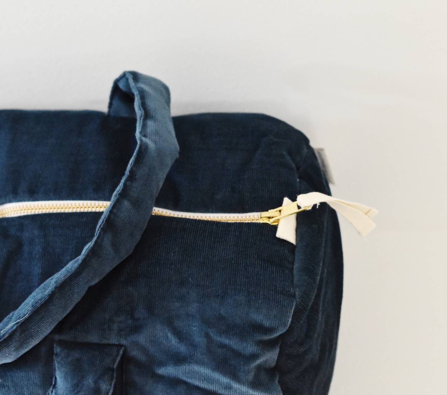 - Fermeture à glissière en laiton doré et son ruban en coton écru pour faciliter l’ouverture et la fermeture du sac.