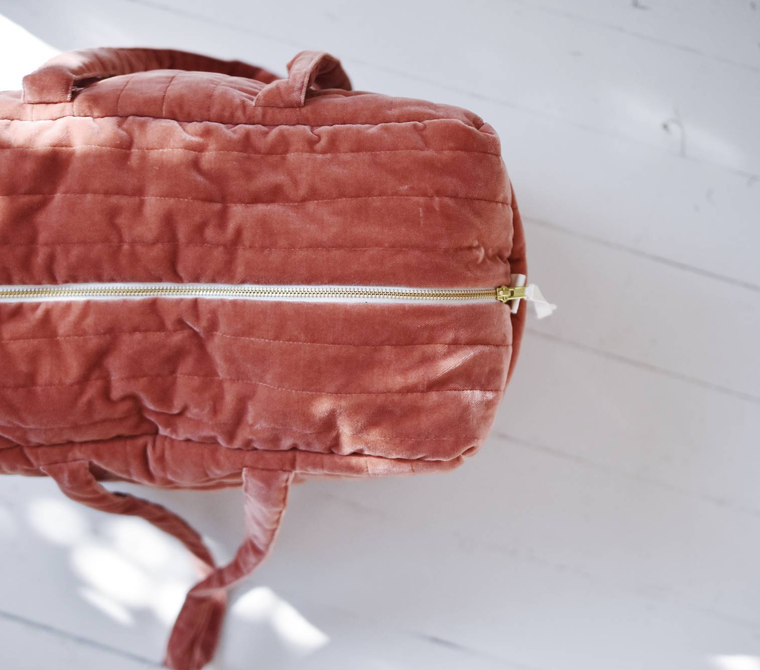 Le sac week-end en velours de coton lisse matelassé dont vous ne pourrez plus vous passer. Et toujours, l’amour du détail avec nos finitions raffinées…