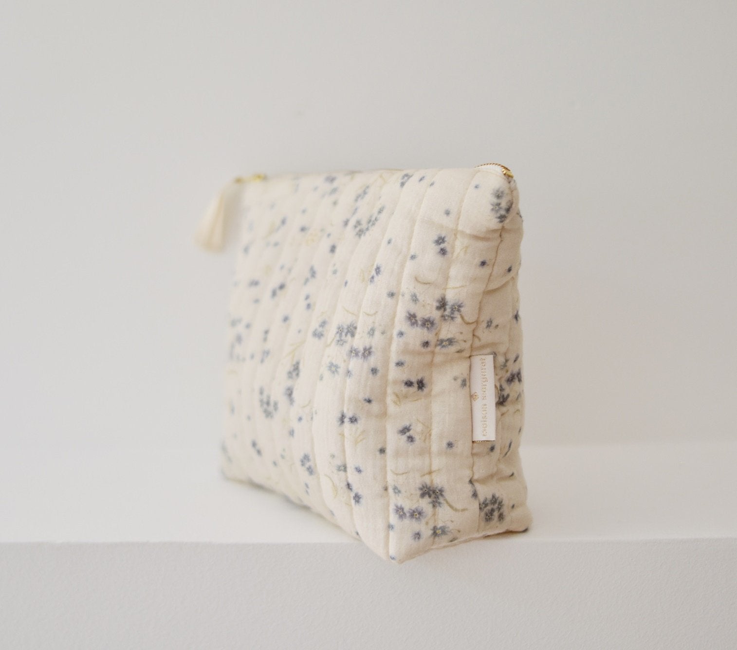 - Maxi trousse de toilette matelassée en coton biologique certifié GOTS.